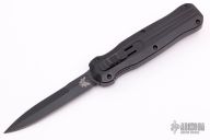 This 3321BK Pagan from Benchmade features a black coated, chisel ground spear point blade with false top edge. The handle is comprised of milled and black coated aluminum. Excellent condition. Comes with original box and papers.