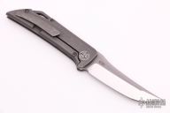 WingManEDC is proud to introduce the second knife in our continued pursuit to offer an incredible selection of iconic collaborations. The YUREI is unmistakable design by custom knifemaker David Santiago. An all titanium framelock folder with speed holes and a dark acid stonewash finish. The blade is M390 steel in a tanto edge and gorgeous belt satin finish. The blade utilizes iconic Lee Williams features Lee Williams’ patented Kickstop mechanism. Comes with original box and papers. Excellent condition.