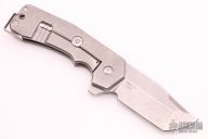 This GMT Rhino Mid-Tech by Jon Graham features a stonewashed blade with flipper. The handle has a stonewashed titanium frame with a black G-10 inlay, matching tip up tail clip and a satin finished lockbar stabilizer. Comes with a cloth pouch. Rides on bearings, nice detent, lockup and blade seating. New from maker.