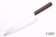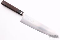 This Gyuto from Shinichi Watanabe features a stainless clad blue steel blade with a hidden tang construction. .153" Blade Stock. 2.11" Blade Depth. The handle features horn hilt nicely complemented by an ebony wood grip. This is a fantastic piece that is razor sharp. New from Maker.