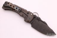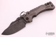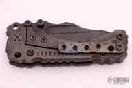 This Custom T-1 Folder by Miller Brothers Blades features a Z-Wear PM blade with textured spine, fullers, notched thumbrest and dual thumbstuds. The handle has a milled and sculpted titanium frame, matching tip up clip and a steel backspacer. Comes with a pin that can be inserted into the handle when open to lock the blade in the open position. Comes with original Pelican case and COA. New from maker.