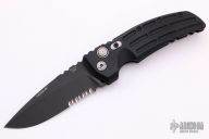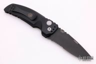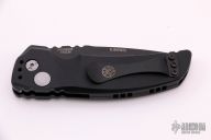 This EX-A01 by Hogue Knives is an Allen Elishewitz design, it features a black partially serrated 154CM blade with notched thumbrest. The handle is black aluminum, tip up or down reversible black stainless steel clip. Has safety. Comes with Hogue box, sheath and papers. Excellent condition.