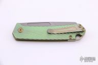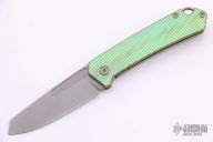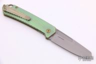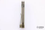This OEM Slim is a Richard Rogers Design and features a bead blasted blade. The handle is milled and anodized titanium with blasted titanium backspacer, hardware and tip up clip. Nice detent, lockup and blade seating. Comes with original packaging and brown leather slip sheath. New condition.