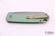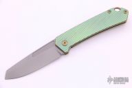 This OEM Slim is a Richard Rogers Design and features a bead blasted blade. The handle is milled and anodized titanium with blasted titanium backspacer, hardware and tip up clip. Nice detent, lockup and blade seating. Comes with original packaging and brown leather slip sheath. New condition.