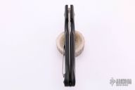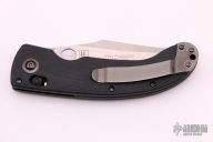 This 741 LUM Onslaught Axis Lock Folder has a satin/tumble finished 154-CM clip point blade with thumb hole. Handle is black G10 over black stainless steel liners, black fiber backspacer, stainless steel tip up clip, and lanyard hole. Excellent condition. Comes with original box and papers. First production run #071/1000