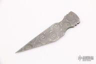 This Damascus Lapel knife by Duane Dwyer features a chisel ground blade with .102" blade stock and .788" blade depth, full tang construction. Excellent condition.