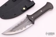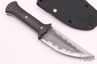 This Jambiya Tactical Persian Dagger by Michael Shiffer features a hand rub satin finished blade with false top edge and awesome hamon, .215" blade stock and 1.838" blade depth, full tang construction. The handle has carbon fiber scales with stainless steel pins. Comes with a leather lined kydex sheath. New from maker.