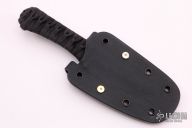 This Utility by Michael Shiffer features a hand rub satin finished blade with nice hamon and textured flats, .164" blade stock and 1.299" blade depth, hidden tang construction. The handle has black cord wrap over black cord. Comes with a leather lined kydex sheath and COA. New from maker.