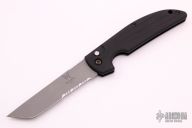 Vintage Benchmade 7500S Automatic Tanto Knife (TSUNAMI) This vintage Benchmade 7500S automatic knife features a black anodized 6061-T6 aluminum handle with taper lock and firing button. The bead blast finished ATS-34 tanto blade has a part serrated edge. Includes a nylon sheath and the original box. Excellent Condition.