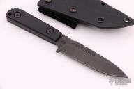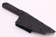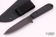 This Tricon Fixed Blade from Strider Knives features a black drop point blade with notched thumbrest. .202" Blade Stock. .926" Blade Depth. The handle is comprised of black G10 scales with lanyard hole over full tang construction. Includes kydex sheath. Excellent condition.