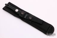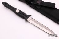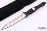This Shadow I from Al Mar Knives features a doubled edge dagger style satin finished blade, .155" blade stock and .754" blade depth. The handle is comprised of zytel over hidden tang construction with lanyard hole in pommel. Comes with black nylon sheath. Excellent condition.