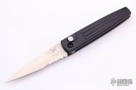 This Spike automatic by Benchmade Knives features a satin finished partially serrated blade and black anodized aluminum frame. Comes with original box and papers. Excellent condition.