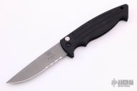 The Benchmade 2000S Reflex from Benchmade is a side opening button automatic with bead blasted, partially serrated blade and black fluted aluminum handle. Good strong opening action. Excellent condition. Comes with Benchmade box. Discontinued.