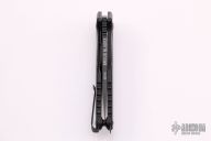 This Mini-Division Flipper Linerlock Folder from Brous Blades (855/100) has a black D2 stainless steel clip point blade with thumb hole and flipper. Handle is black G10 over black titanium liners. Bead blasted stainless steel tip up clip and lanyard loop. Flips great, blade is almost dead center, and nice lockup. Knife is in excellent condition. Comes with original box and COA dated 2/1/14.