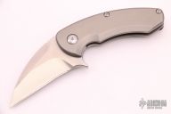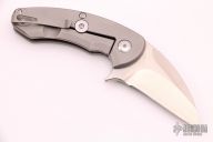 This Silent Soldier Framelock by Brous Blades features a satin finished wharncliffe style blade with swedge, notched thumb rest and flipper. The handle is comprised of a titanium frame over a stainless steel backspacer. Titanium tip up clip. Includes original box and COA dated 2/6/14. Excellent condition.