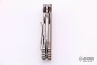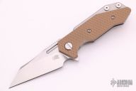 This Half Track from Hinderer Knives features a stonewash finished wharncliffe blade with swedge, fullers, notched thumbrest and flipper. The handle is comprised of a stonewashed titanium frame complemented by a tanG-10 scale. Titanium clip is positioned for tip up, right hand carry. Excellent condition. Comes with original box and extra hardware.