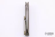 This Keen flipper by Massdrop is a Ray Laconico design. It features a satin finished blade with flipper. The handle has an anodized and tumbled titanium frame with matching backspacer and tip up clip. Comes with original box and zippered case. Excellent condition.