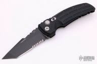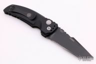 This EX-A01 by Hogue Knives is an Allen Elishewitz design, it features a black tanto partially serrated 154CM blade with notched thumbrest. The handle is black aluminum, tip up or down reversible black stainless steel clip. Has safety. Comes with Hogue box and papers. Excellent condition.