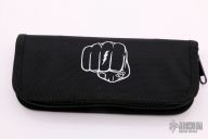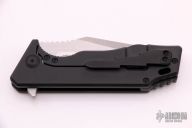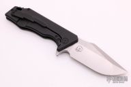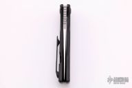 This knife features a satin finished blade with a notched thumbrest and flipper.  The handle features black titanium with a matching tip up pocket clip and backspacer.  Includes the original padded zippered case and box.  Nice detent, lockup and blade seating.  Excellent Condition.