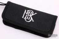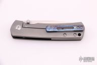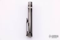 The Old Guard was designed by Ray Laconico and Sanford Owen as a back-to-basics style folder. The blade features a satin finish with dual thumbstuds. The handle features a marbled carbon fiber scale complemented by a bead blasted titanium lock side and an aftermarket anodized titanium tip up pocket clip.  Includes a padded zippered case.  Excellent condition.