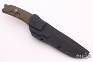 The handle screws are in anodized aluminum. Sheaf made of molded KYDEX. We will also introduce a stainless steel version using N690Co Cobalt Vanadium steel for the inner core blank. Both solutions are extremely strong but lightweight (only 5 ounces in Titanium) multi use tactical knife with superior.