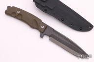 As well, as is the case with all special ops teams looking to improve their edge in the field, they have been looking for a new diving and EOD knife that is 1) 100% non magnetic for mine demolition, 2) completely rust-resistant and 3) a superior cutting tool. From this list of essential needs we started the development of our STEALTH blades. The blade is manufactured using an inner core blank of BETA Titanium with external layers of Carbon Fiber that are bonded together using special resins in a vacuum process. The end result is a blade that is very flexible with minimal vibration. The Titanium and Carbon Fiber are completely non-magnetic and rust-resistant and are ideal components for EOD and diving purposes. The handle is made from FORPRENE material, a special industrial grade elastopolymer that we are using in all of our FKMD knives.