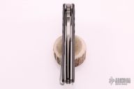 "Jason Brous began his efforts in knifemaking with the benefit of nearly 10 years of experience in CNC machining. His father owns a shop that specializes in the custom machining of high-precision components, mainly for the medical industry. Jason spent a lot of time in his father’s shop while growing up, and by his mid teens was actively helping out with production. His skills and knowledge steadily increased and by the time he was 20 he was a seasoned and very competent machinist. Jason's interest in knives actually began with art - specifically a style called “Bio-mechanical” - as practiced by one of his favorite artists, a Brazilian painter and tattooist named Lango. Biomechanical art (also called Biomech) is a surrealistic style of art that combines elements of machines and robotics with organic animal features. Intrigued by this style of art and its similarity to many fantasy knives, Jason figured that knifemaking would be a natural extension of his metalworking skills and an appropriate medium for his artistic ideas. Although he had no specific training in knifemaking, in 2010 he designed and made his first knife - a fantasy design with a Biomech flavor. Through persistent trial and error, Jason changed his style of knife design to focus on functional simplicity, while still maintaining a strong artistic signature. His early successes came in the form of a series of stout neck knives with dual finger-hole grips. Fans of these “Silent Soldier” neck knives began asking for other expressions of the design. Since then, Jason has created numerous variations including a clip point version, a tanto version and the very popular folder version called the Silent Soldier Flipper."