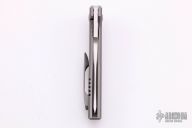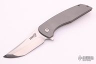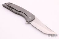 This Mid-Tech flipper by John Barker features a satin finished hand ground tanto blade with swedge and flipper. The handle has a tumble finished titanium frame with a titanium backspacer and tip up clip. Nice detent, lockup and blade seating. Rides on caged bearings. Excellent condition.