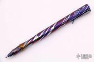 This Variant pen from Nichols Damascus features a mokuti body and cap with a anodized titanium clip. The cap can be threaded onto the opposite end while the pen is in use. This pen uses a Pilot ink refill. Comes with original box and COA. Excellent condition.