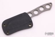 This Firecracker neck knife by Peter/Kyle Carey features a tumble finished blade and handle, .154" blade stock and 1.139" blade depth. The spine of the blade has a bottle opener. Comes with a kydex neck sheath. Excellent condition.