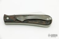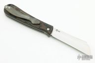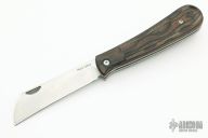 This Caipira Slipjoint by Rick Lala of Korth Cutlery features a hawkbill satin finished blade with nail nick and notched thumbrest. The handle has milled camo canvas micarta covers, titanium liners, orange peel finished titanium spring, tip up orange peel finished titanium clip, lanyard hole, black G-10 pivot collars. Has half-stop, flush in the open and closed positions. This was originally from the 2019 TKI. Excellent condition.