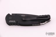This TR-5 by Pro-Tech Knives features a black spear point blade with a single thumbstud. The handle has a black aluminum handle with stainless steel backspacer with lanyard hole, tip up blade stainless steel clip, features Matthew Lerch's Spring Assist. Has some scuffs, otherwise good condition. This was from the Pre-Production Run of 2016 and is #8 of 200 made.
