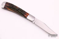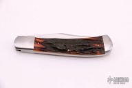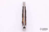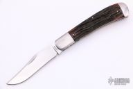This Slipjoint by Luke Swenson features a hand rub satin finished blade with nail nick. The handle is comprised of stainless steel bolsters, stainless steel escutcheon, stag covers, stainless steel liners, stainless steel spring. Half stop, flush in all positions. Comes with a zippered case. Has a couple of very light scratches, otherwise excellent condition.