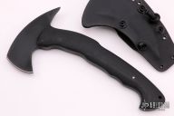 The WK RnD Sayoc Kali is intended for concealment, or as part of a lightweight bug-out bag. It is a quick handling and powerful tool that can make a difference in out of the ordinary situations. The WK RnD Axe Series is a collaborative design between Master Bladesmith Daniel Winkler and skilled Sayoc Kali martial arts trainer Rafael Kayanan. The handle design provides a standard grip position, as well as a secondary close quarter grip that was developed to emulate the feel of a handgun grip. The optional front spike is a valuable feature in combat usage. Axe Specifications Axe steel: 80CrV2 Black oxide no-glare finish. Sheath Fast draw carrier Lined Kydex® HD shockcord quick-release retention system. Excellent condition.