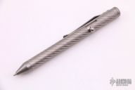 This unique mid sized bolt-action pen is made completely of titanium with the only exceptions being the ink cartridge, the spring, and the O-ring. Pen is new from Mr. Fellhoelter and comes in original plastic storage tube.