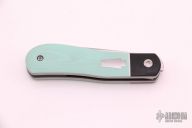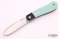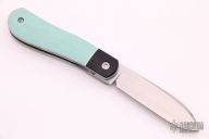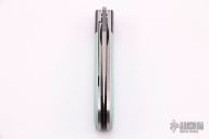 This Dogleg Front Flipper by Enrique Pena features a hand rub satin finished drop point blade with a notched thumbrest and front flipper. The handle has black canvas micarta bolsters, micarta scales over white liners, canvas micarta backspacer.  Stainless steel shield. Includes padded zippered case. New from Maker!