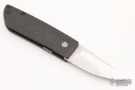 The front flipper by Les Adams features a high polish blade with notched front flipper. The handle features carbon fiber frame. Comes with original felt pouch. New from maker.