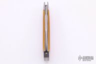 This slipjoint by Stanley Buzek features a hand rub satin finished blade with nail nick. The handle has stainless steel bolsters with integral liners, natural linen micarta scales, black linen micarta escutcheon, stainless steel spring. Has half-stop, flush in all positions. Comes with a zippered case. New from maker at the 2021 ICCE show.