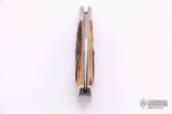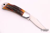 This Lockback from Tobin Hill features a hand rub satin finished clip point blade with nail nick. The handle is comprised of stainless steel bolsters with stag covers over stainless steel liners and backspacer/lockbar. Includes padded and zippered case. Brand new from maker at the 2021 ICCE show.