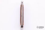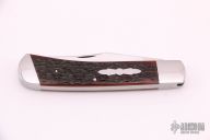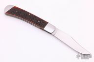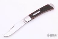 This slipjoint by Stanley Buzek features a hand rub satin finished blade with nail nick. The handle has stainless steel bolsters with integral liners, jigged bone scales, stainless steel escutcheon, stainless steel spring. Has half-stop, flush in all positions. Comes with a zippered case. New from maker at the 2021 ICCE show.