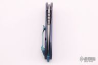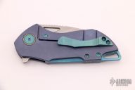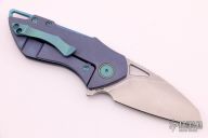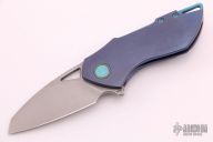 This Riverstone by Grissom Knife and Tool features a tumble finished blade with notched thumbrest and flipper. This handle has a titanium frame, backspacer, pocket clip, collars and hardware. Stainless steel lock insert, ceramic ball bearings and detent. Stainless steel standoffs, blade stop and pivot. Comes with original box and zippered case. New from maker.