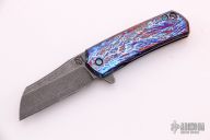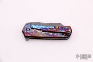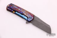 This Imp Framelock Flipper by NCC Knives features a stonewashed blade with milled bevels. The handle has a Ragnarök anodized titanium frame with anodized titanium hardware and tip up clip with hidden screws. Comes with original box. New from maker at the 2021 ICCE show.