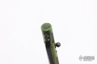 "I am a folder maker. While there will always be the occasional fixed blade, folders are my passion. The steels I enjoy working with include CPM154, ATS-34, 440C, S30V, and Stainless Damascus from Devin Thomas. All of the metal parts on my knives that can be Titanium are Titanium including frames, liners, thumbstuds, bolsters, clips and spacers. Pretty much everything except for the blade. I often anodize a substantial portion of my titanium, and can get a deep green that few makers succeed at. As far as handle materials go, I mostly use Carbon fiber, G10, or Micarta. I use large bronze pivot bushings in all of my folders, and either Nylatron or Bronze washers. All of my parts are made in-house except the screws. I have an old Bridgeport Mill, an older Logan Lathe (1943), a Hardcore grinder, and various other tools, lots of them made by myself. I also do all of my own Heat treating in an EvenHeat Oven." My knives have won several major awards, including Best Tactical Folder at the Blade Show 2011.