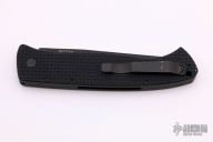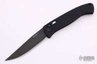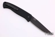 The Large Brend Auto #1 measures in at almost 11 inches overall, and is a big knife by any standard. The Brend 1 features Walter Brend's famous "Model 1" blade shape. It has a black finished 154-CM blade with a plain cutting edge. The T6-6061 aluminum handle is black anodized with a full knurl texture for extra grip. The Brend Auto 1 comes with a black pocket clip and heavy duty black nylon sheath. This is a giant knife, but despite the size, it's remains one of the fastest autos on the market. Comes with original box, sheath and papers. Excellent condition.