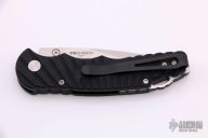The TR-5 is assisted opening and features a hardened steel glass breaker, deep carry clip and the legendary Pro-Tech coil spring action! TR-5 has all black aluminum handles with Wilson Combat milling texture, black blade, and a black deep carry clip. Includes a zippered case. Has a couple scuffs, otherwise excellent condition.