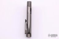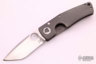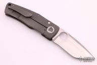 This Rick by Sharknivco features a hand rub satin finished blade with thumbhole and notched thumbrest. The handle has a bead blasted titanium frame with custom pivot, tip up bead blasted titanium clip, orange peel finished titanium backspacer. Has a few light scuffs, otherwise excellent condition.