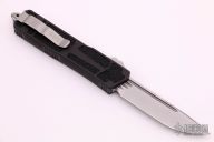 This Scarab II OTF by Microtech features a stonewashed M390 blade S/E, Black aluminum handle with a single glass breaker. Comes with original packaging. Dated 12/2020 Serial number 711. Excellent condition.