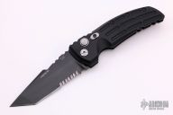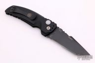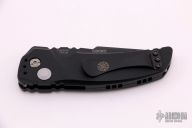 This EX-A01 by Hogue Knives is an Allen Elishewitz design, it features a black tanto partially serrated 154CM blade with notched thumbrest. The handle is black aluminum, tip up or down reversible black stainless steel clip. Has safety. Comes with Hogue box and papers. Excellent condition.