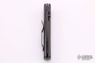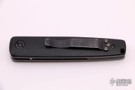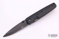 This Custom Viper by Emerson Knives features a black chisel ground blade with single thumbstud. The handle has black G-10 scales, bead blasted titanium liners, black G-10 backspacer, tip up black stainless steel clip. This knife features the Specwar Emerson logo. Smooth action, nice detent, blade seating and lockup. This knife was made around the mid 1990's.  Has some scuffs and scratches, otherwise good condition.