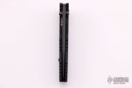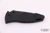 This Keating Hornet Auto by Masters of Defense has a black blade with dual thumbstuds and fullers. The handle has a black aluminum frame with non-slip inserts. Does not have the clip. Excellent condition.